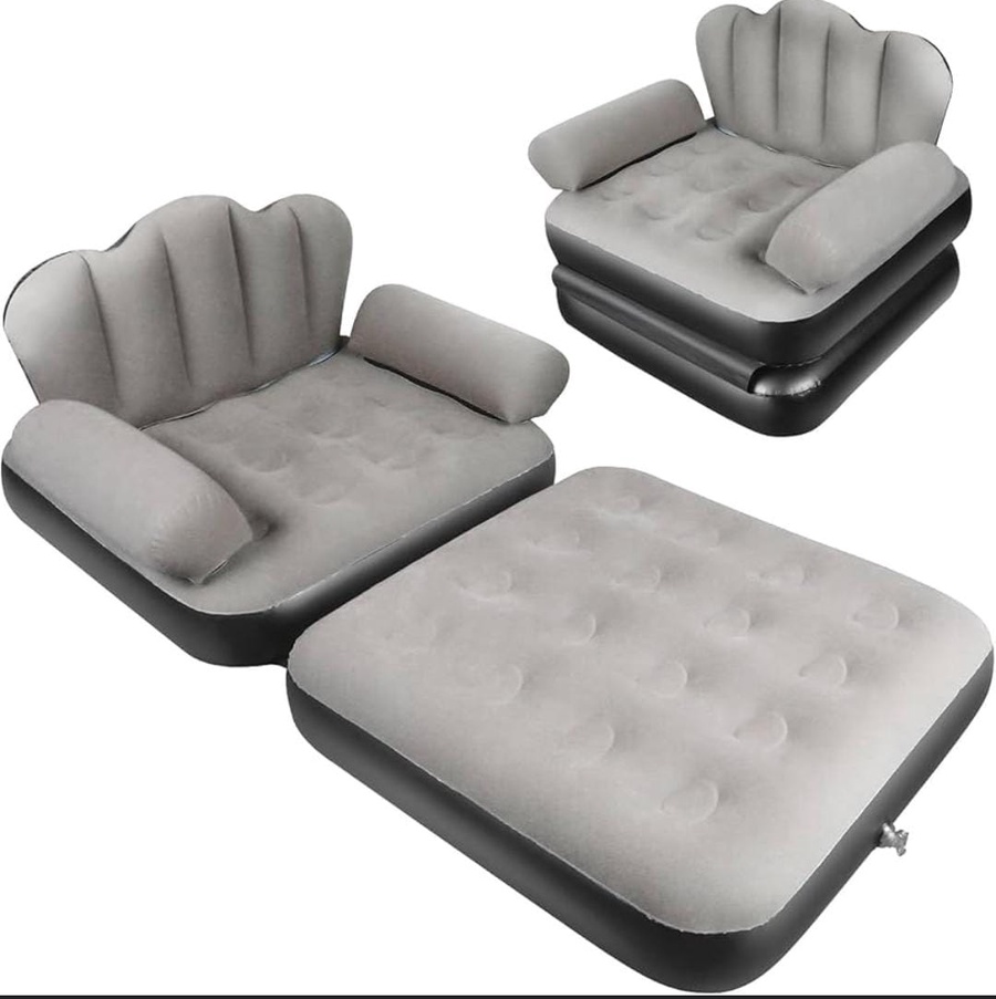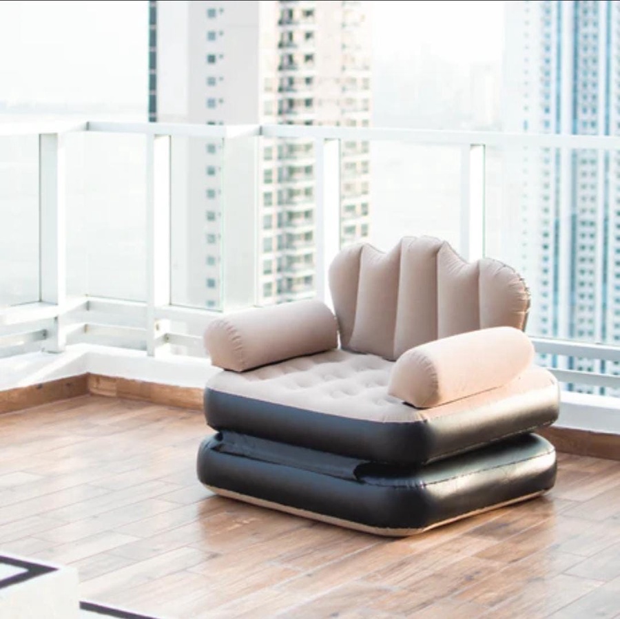 أريكة نفخ مريحة وعملية، سهلة التثبيت والتخزين، مثالية للاستخدام في المنزل، الرحلات، أو الضيوف. تصميم متين ومقاوم لضغط الهواء لضمان راحة واسترخاء طوال الوقت."