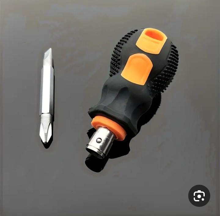 مفك صغير بمقبض مريح لتسهيل الوصول إلى الأماكن الضيقة. مثالي للأعمال الدقيقة والصيانة المنزلية، مصنوع من مواد متينة ويوفّر تحكمًا ممتازًا.