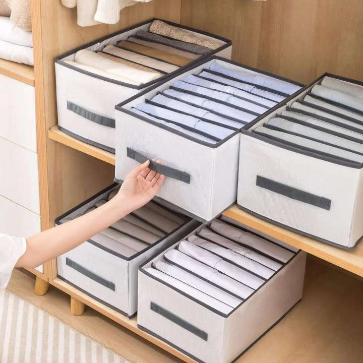 "صندوق ترتيب الملابس عملي وأنيق يساعدك على تنظيم ملابسك بطريقة مرتبة ويوفر مساحة في الخزانة. مصنوع من مواد متينة بغطاء محكم، مثالي للتخزين تحت السرير أو داخل الدولاب