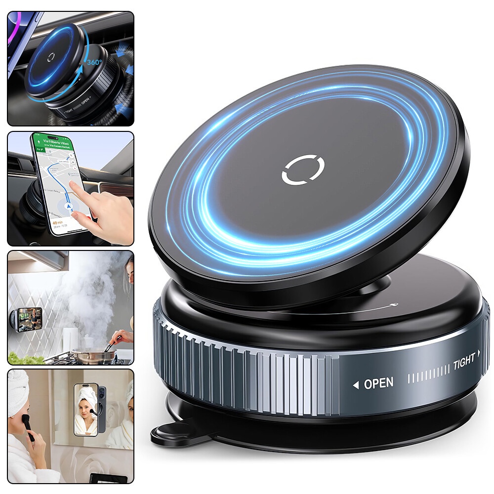 حامل الهاتف المغناطيسي بخاصية الشفط هو منتج مبتكر يتيح لك تثبيت هاتفك بشكل آمن ومريح أثناء القيادة أو العمل أو الاسترخاء.