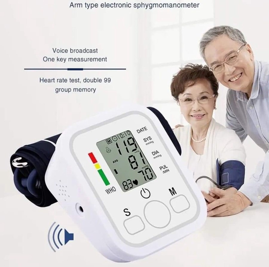 "جهاز قياس ضغط الدم الإلكتروني بدقة عالية وتصميم مريح، مناسب للاستخدام المنزلي. شاشة واضحة ونتائج فورية لتتبع صحتك بسهولة."